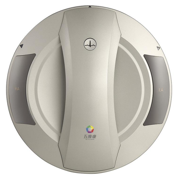 一個圓盤,直徑21cm,一斤重,背面8個電極,正面2個電極,看上去像極了一個微型飛碟,這就是五維康公司按照醫(yī)學(xué)標(biāo)準(zhǔn)設(shè)計十二導(dǎo)聯(lián)、獨創(chuàng)手持式設(shè)計產(chǎn)品——“飛碟心電儀”。這已是公司上市的第2代產(chǎn)品,獲得了二類醫(yī)療器械注冊證,并已進(jìn)入批量生產(chǎn)和推廣階段。這個看上去并不復(fù)雜的“飛碟心電”,在內(nèi)部測試階段已經(jīng)迭代了N多樣式。